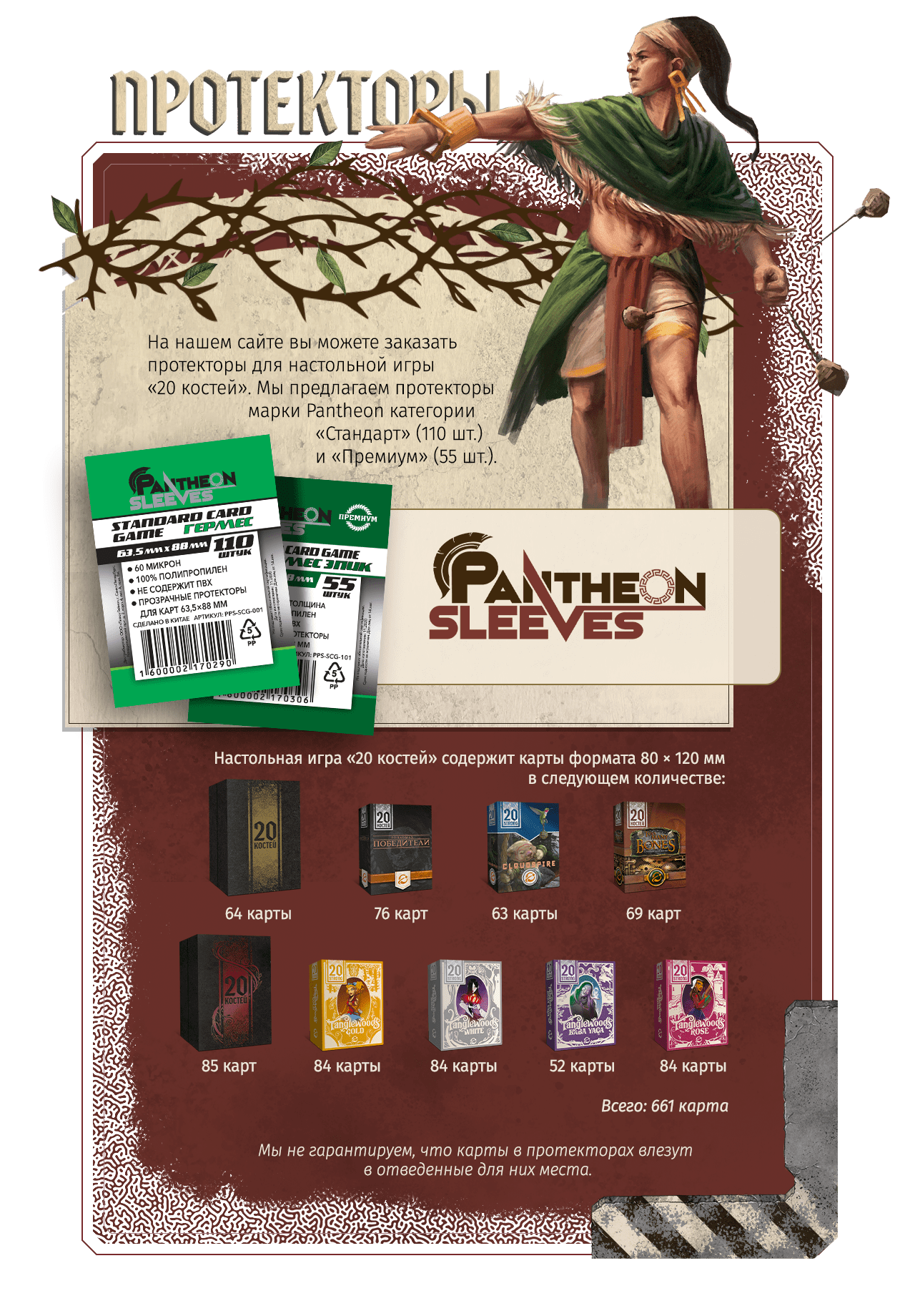 Базовая игра включает общие компоненты и одну колоду. Дополнительно в кампании предлагается ещё 8 уникальных колод.