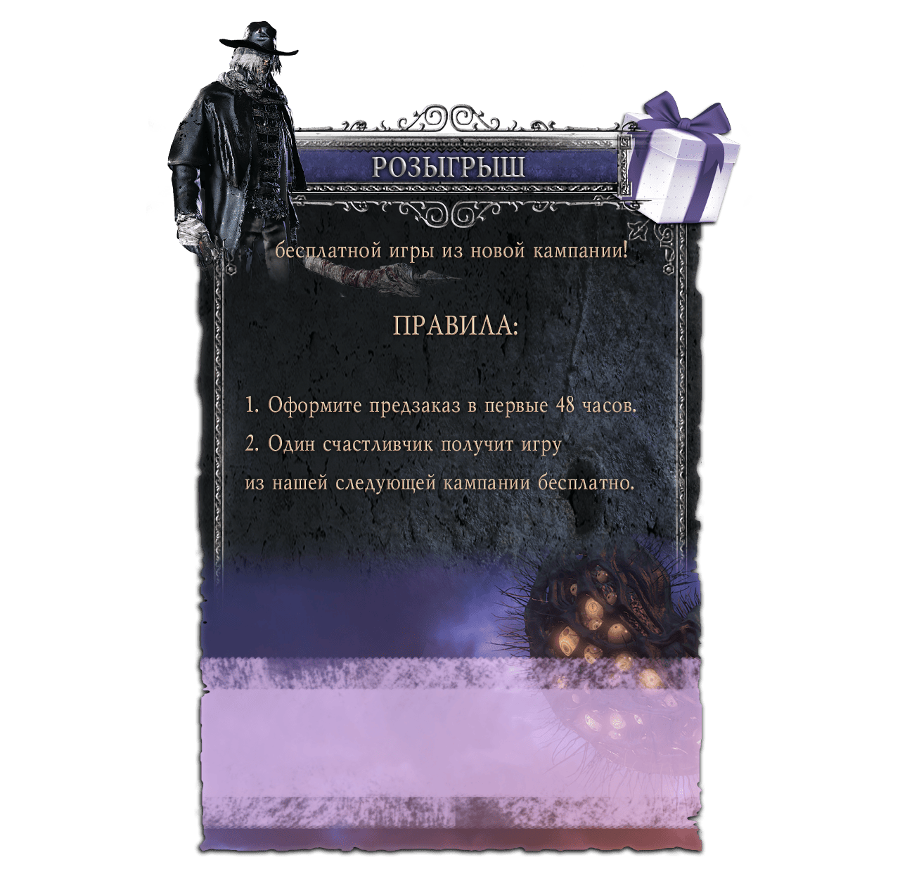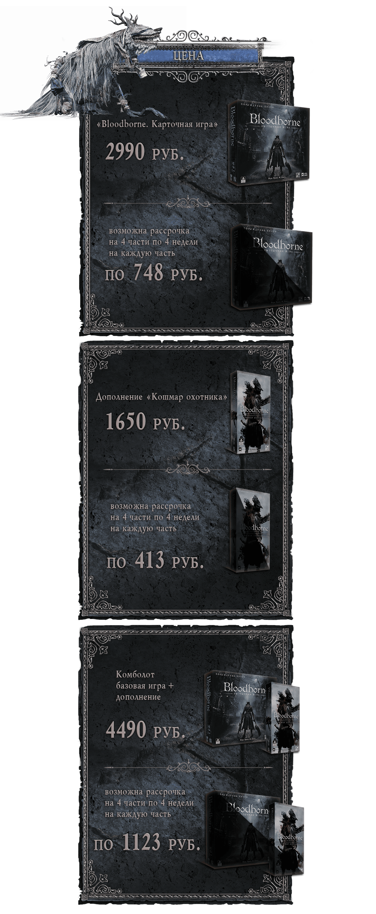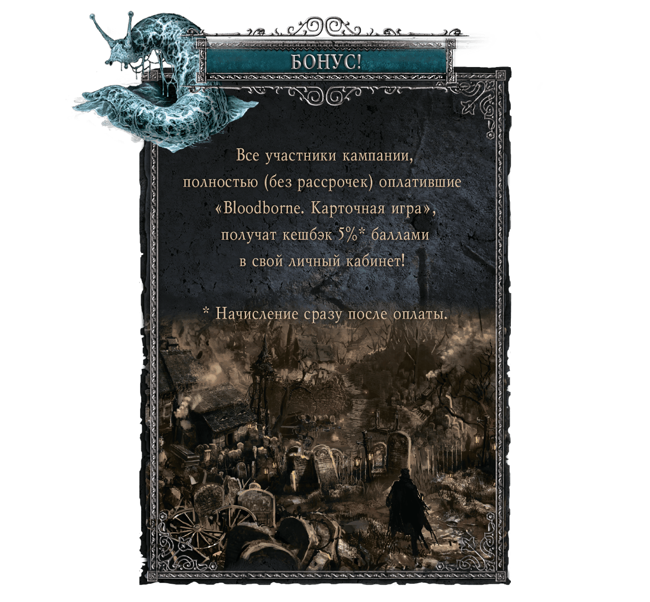 Ретираж настольной игры, основанной на вселенной культовой видеоигры «Bloodborne: Порождение крови». С дополнением «Кошмар охотника»!