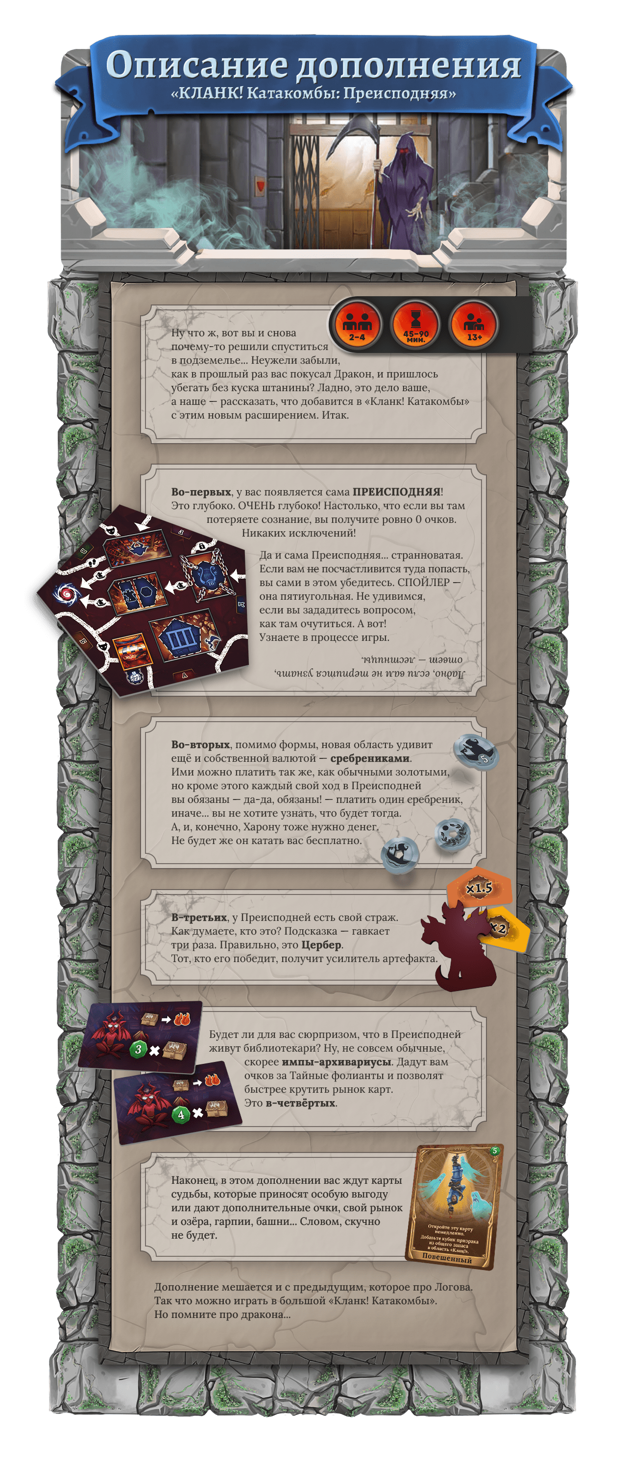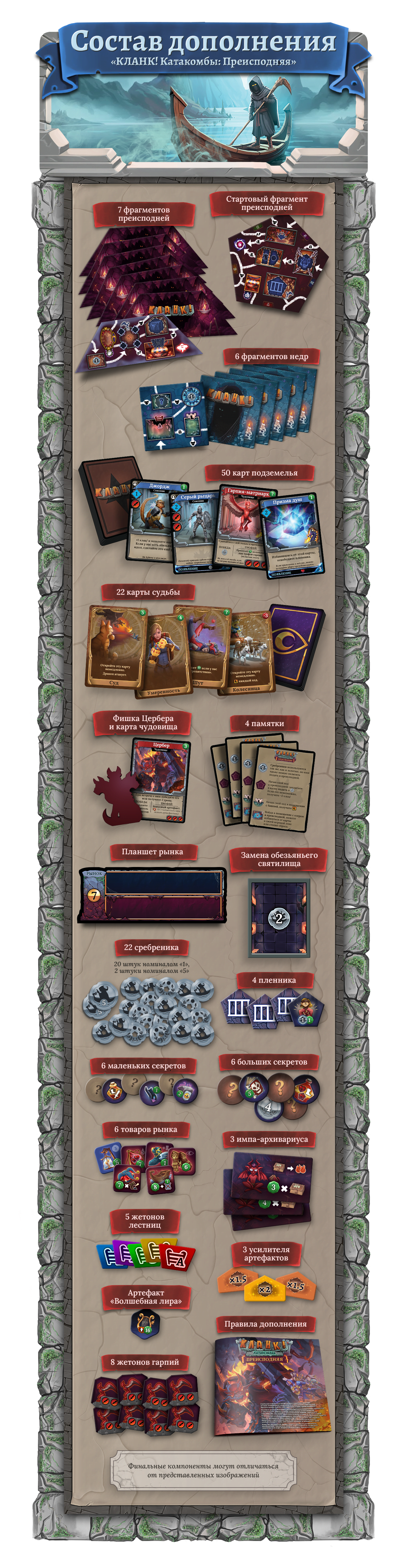 База содержит 183 карты формата 63*88мм. (2 пачки), Дополнение "Преисподняя" 77 карт (1 пачка). Дополнение "Логова и затерянные чертоги" 50 карт (1 пачка). Комболот - 310 карт (3 пачки).