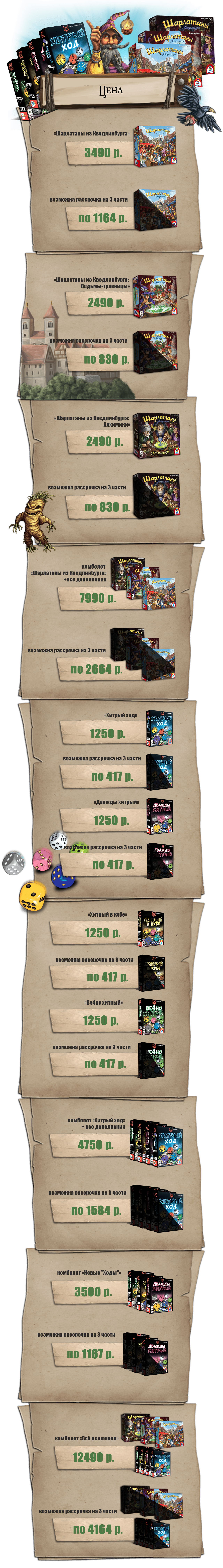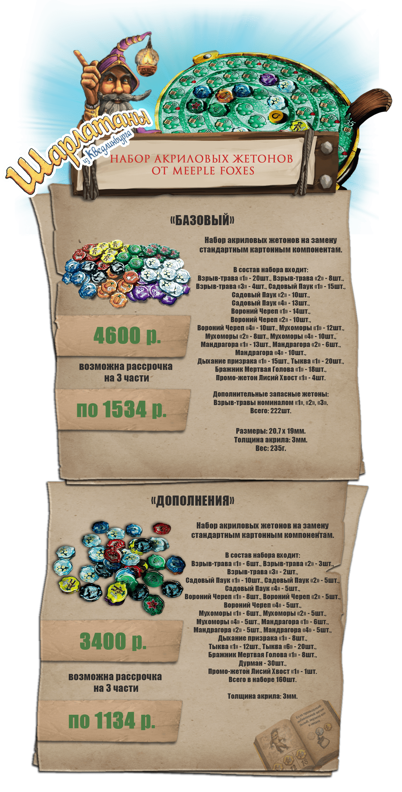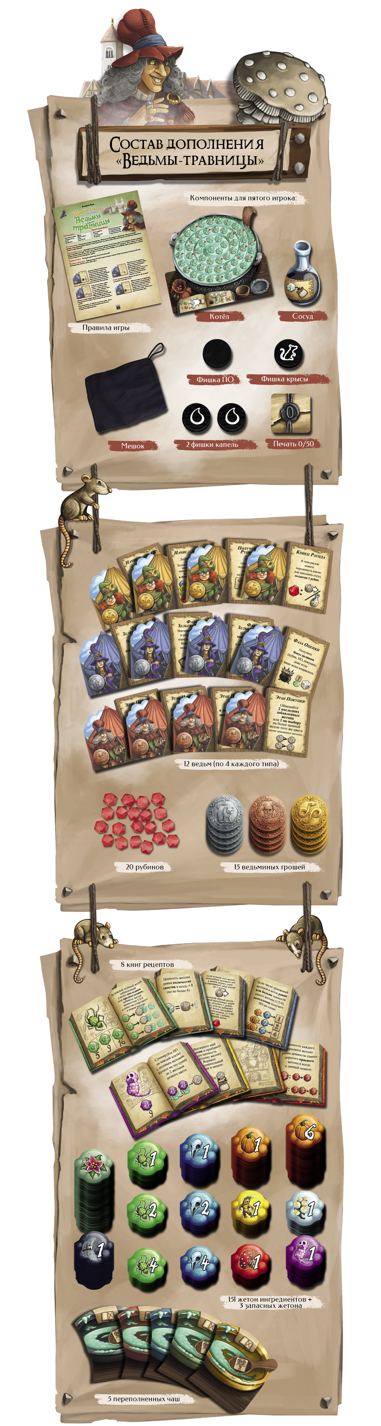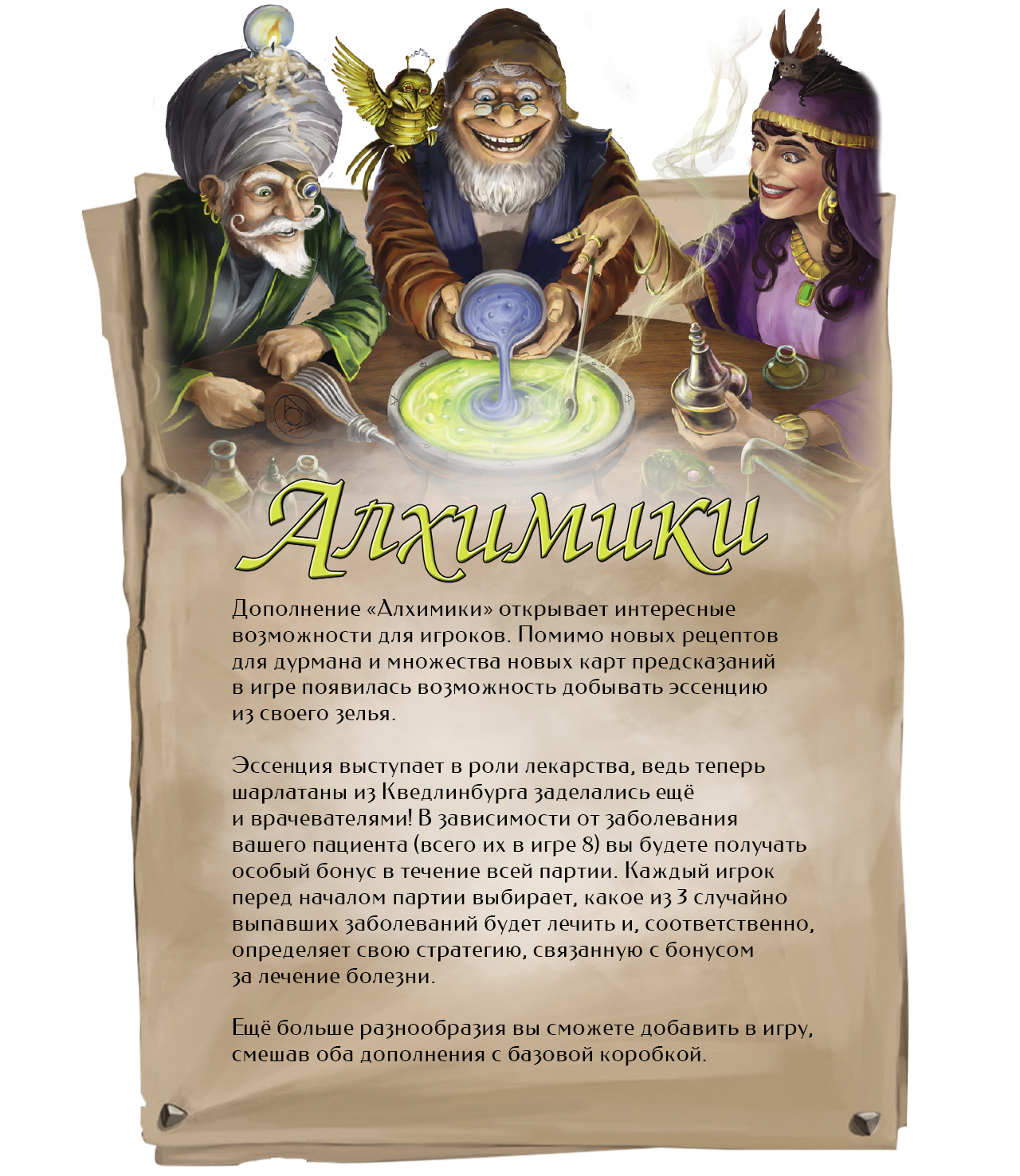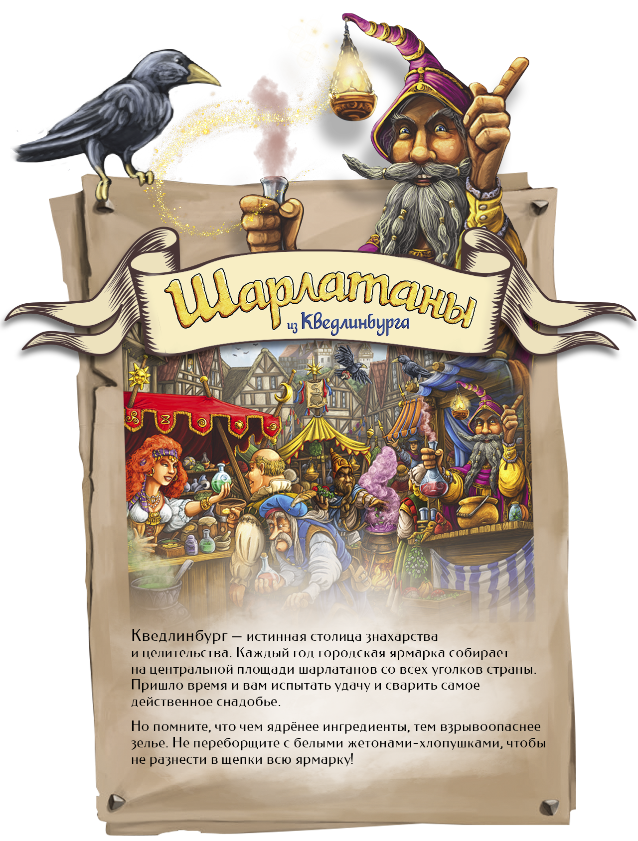 Включает по одной копии базы «Шарлатанов» с дополнениями «Ведьмы-травницы» и «Алхимики», «Хитрого хода», «Дважды хитрого», «Хитрого в кубе» и «Ве4но хитрого».
