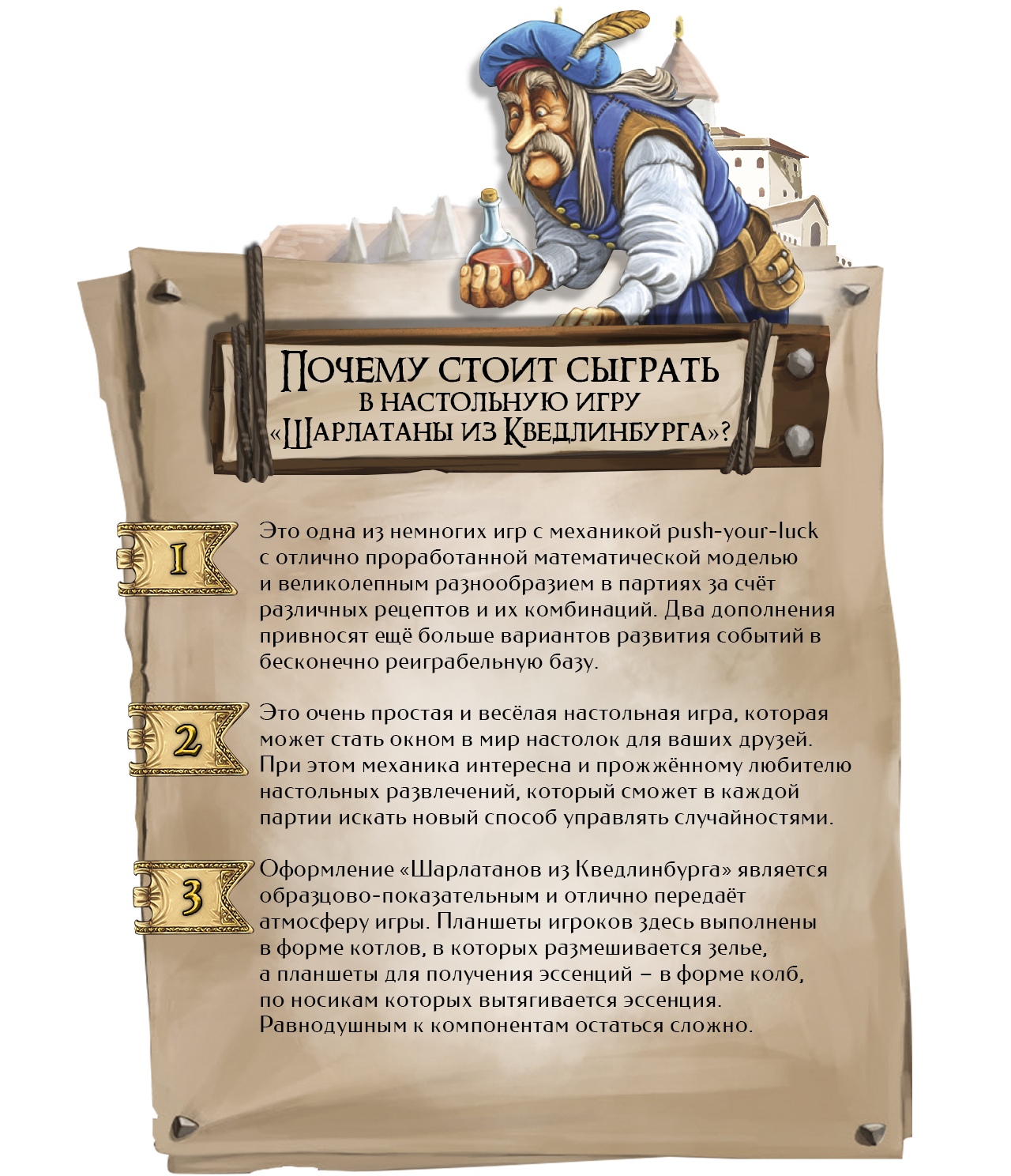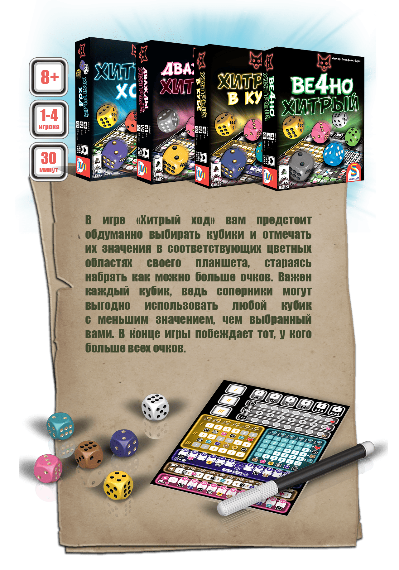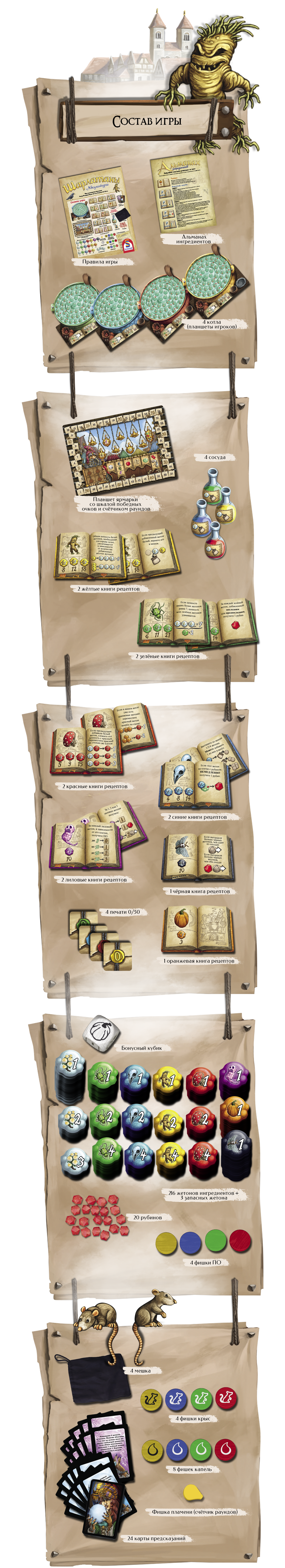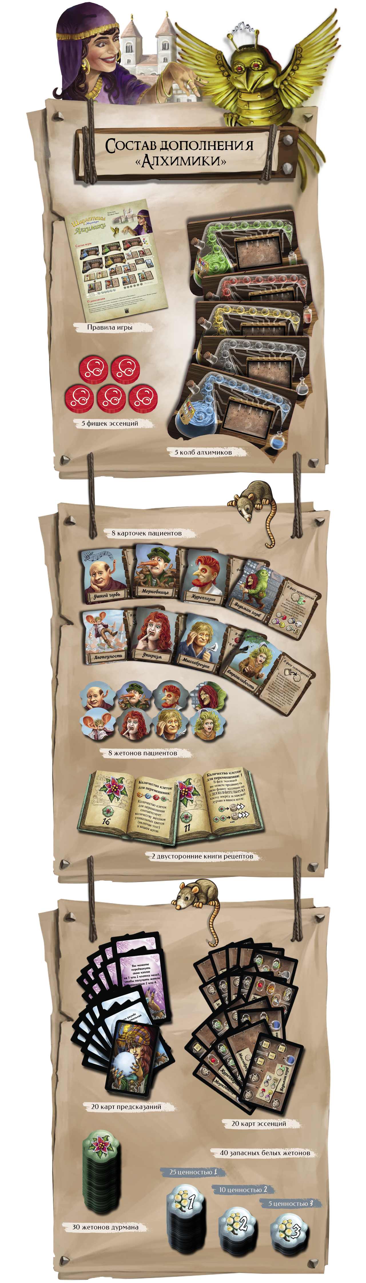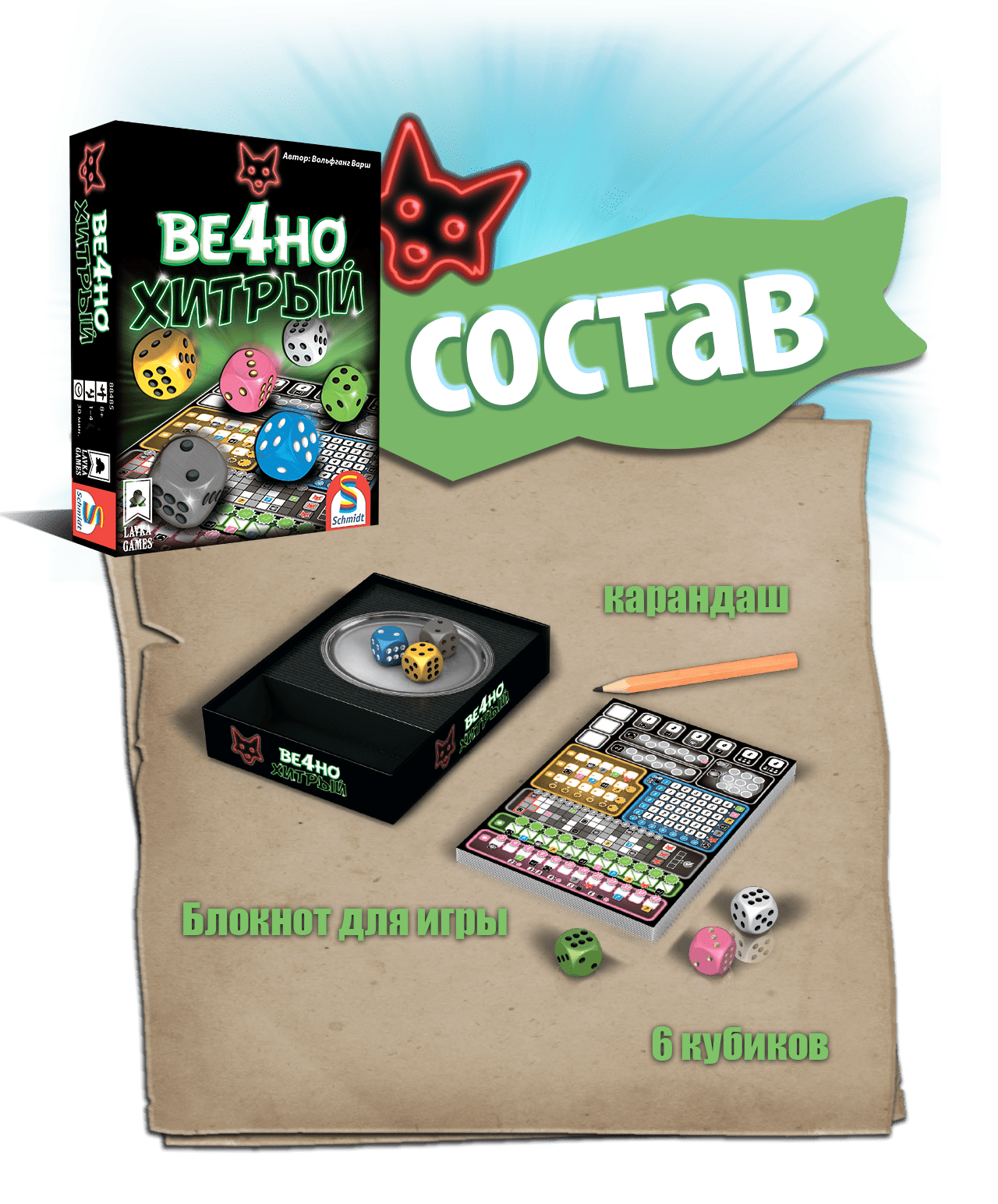 Включает по одной копии базы «Шарлатанов» с дополнениями «Ведьмы-травницы» и «Алхимики», «Хитрого хода», «Дважды хитрого», «Хитрого в кубе» и «Ве4но хитрого».
