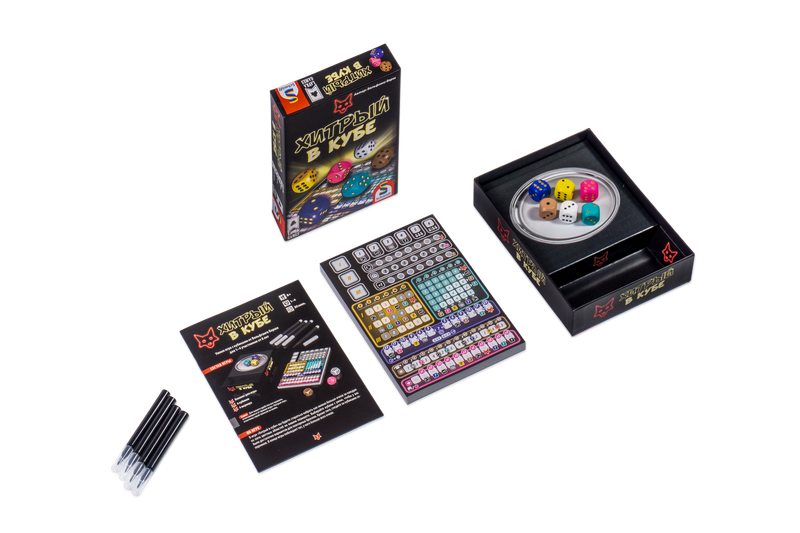 Уведомить о наличииВ настольной игре «Хитрый в Кубе» вас ждёт пять новых игровых областей и вариантов получения победных очков при помощи кубиков разных цветов.