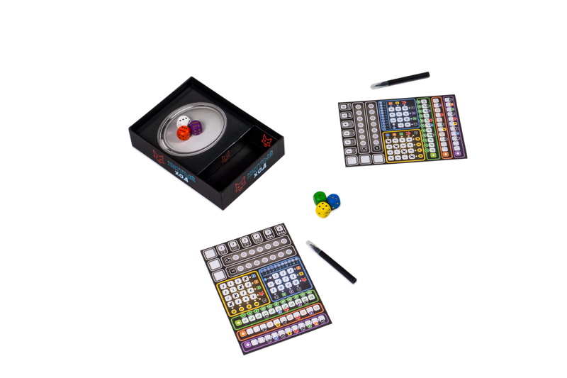 В состав игры входит только 6 кубиков, игровой блокнот и 4 маркера, но, поверьте, этого хватит, чтобы увлечь вас и ваших друзей в многочасовое соревнование.
