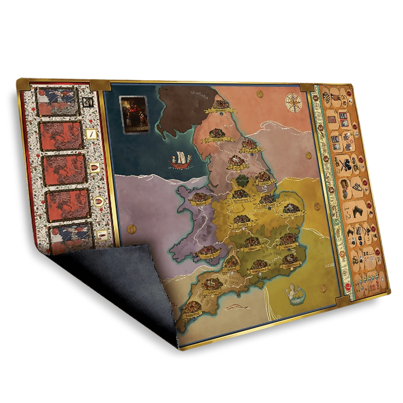 Масштабированное игровое поле для игры "Фьефы Англии" обеспечивает комфортное размещение всех компонентов. Карта остается читаемой даже при высокой плотности войск. Идеально подходит для обладателей делюкс-компонентов и игроков, стремящихся к максимальному удобству и глубокой атмосфере.