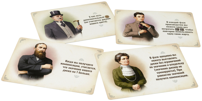 В фазе аукциона игроки делают ставки на предприятия. Тот, кто сделал наивысшую ставку забирает предприятие себе, а те, кто сделал более низкие ставки, получают компенсацию (иногда она может быть даже выгоднее)