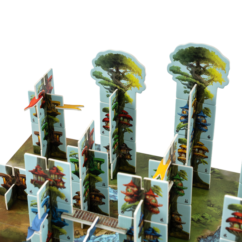 С каждым ходом деревья на поле будут расти, создавая удивительный трёхмерный пейзаж. Это уникальный случай, когда стратегически глубокая игра растёт ещё и ввысь! Красочные тайлы соединяются друг с другом как детали конструктора. Они сделаны из необычайно плотного картона, который точно выдержит много градостроительных партий.