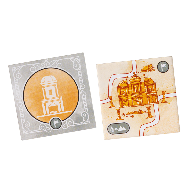 Когда пустынный тракт соединяется с железной дорогой или шоссе, на стыке появляется путевая станция. Через неё песчаные маршруты связываются с остальной транспортной сетью — а заодно открывают доступ к достопримечательностям. Если оазис, пирамида, обелиск или сфинкс соединены хотя бы с одной путевой станцией, они считаются активными. В конце партии вы получаете очки за наборы разных типов активных достопримечательностей. Чем разнообразнее набор, тем больше награда.