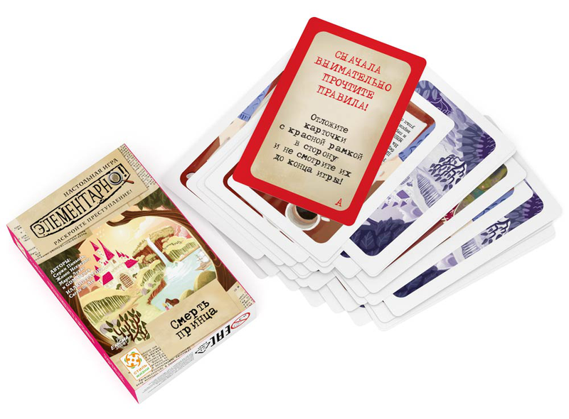 Уведомить о наличии Трагическая смерть принца повергла королевство в шок. Было ли это холоднокровным убийством или роковой случайностью? Проведите расследование допросив всем известных персонажей сказок и узнайте! Кооперативная настольная игра Смерть принца – игра-детектив из серии «Элементарно!».
