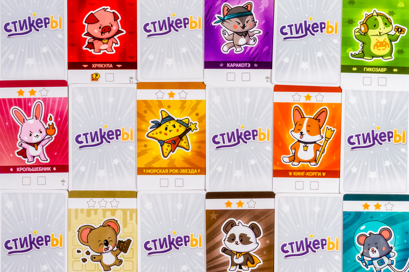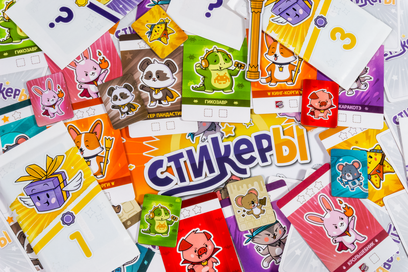 Настольная игра «Стикеры» содержит 126 карт формата 56 × 89 мм