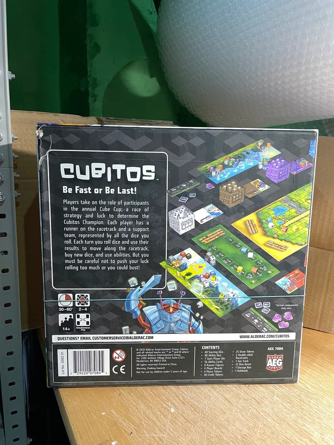 Уведомить о наличииКубитос (Cubitos) — настолка на броски игральных костей и проверку удачи (press your luck), участники которой участвуют в гонке за право поднять над головой кубический кубок. Любой игрок представлен атлетом и группой поддержки, роль которой играют кости. В свой ход игрок бросает игральные кости и использует выпавшие грани, чтобы продвигать вперёд на трассе своего атлета, приобретать новые кости и использовать разнообразные свойства. Главное не увлечься бросками костей и «не сгореть».