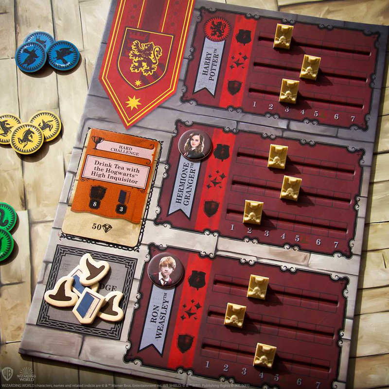 Harry Potter: House Cup Competition – это еврогейм для 2-4 игроков, с механикой размещения рабочих, несложными правилами и увлекательным геймплеем. Красивые и тематичные компоненты, не оставят равнодушными даже тех, кто не знаком с грандиозным произведением о Гарри Поттере, а настоящих поклонников приведут в необычайный восторг!
