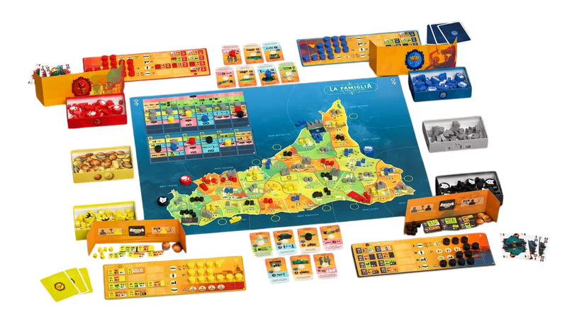 В настольной игре «La Famiglia. Великая мафиозная война» две команды (2 на 2) противостоят друг другу в борьбе за контроль над Сицилией. В вашем распоряжении находятся мафиозные семьи, каждая со своими особыми способностями.