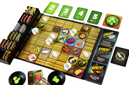 Каждый ход добавляйте новый ингредиент в сужающееся пространство кухни и старайтесь расположить их для заказов, над которыми вы работаете. Выполните восхитительный рецепт за очки или возьмите карту действия, например, Chop!, Stack! или Switch!, чтобы помочь с будущими ходами. Не забудьте собрать острый васаби, чтобы выполнять заказы стильно! В конце вечера побеждает шеф-повар, набравший наибольшее количество очков за выполнение своих рецептов!