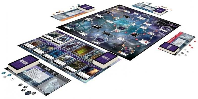 Общий рынок показывает, кого можно нанять. Потратив влияние, ты нанимаешь приспешников и добавляешь их карты в свой сброс. Когда твоя колода опустеет, а тебе будет нужно добрать карту, ты просто замешаешь их в новую колоду вместе со всем сбросом. С ходом игры ты размещаешь войска на поле и перемещаешь их по Подземью, чтобы брать под контроль регионы, в том числе Мензоберранзан и Черепорт.