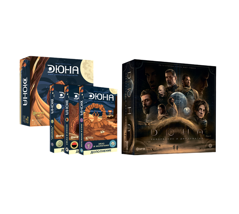 Отдельная игра от создателей оригинальной «Дюны» с упрощёнными правилами, быстрыми динамичными партиями и иллюстрациями по мотивам фильма Дени Вильнёва.