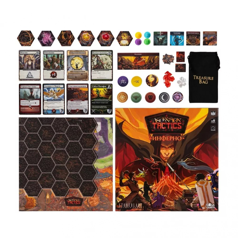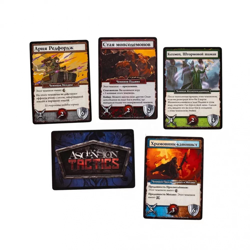 «Ascension Tactics. Инферно» – это колодостроительная игра с элементами контроля территории. Все игроки получают одинаковые колоды и постепенно улучшают и дополняют их новыми картами в течение партии. В свой ход вы разыгрываете карты и получаете ресурсы, которые тратите на командование своими чемпионами, сражающимися на поле боя, и покупку новых карт. В игре есть множество сценариев с разными целями и дополнительными условиями.