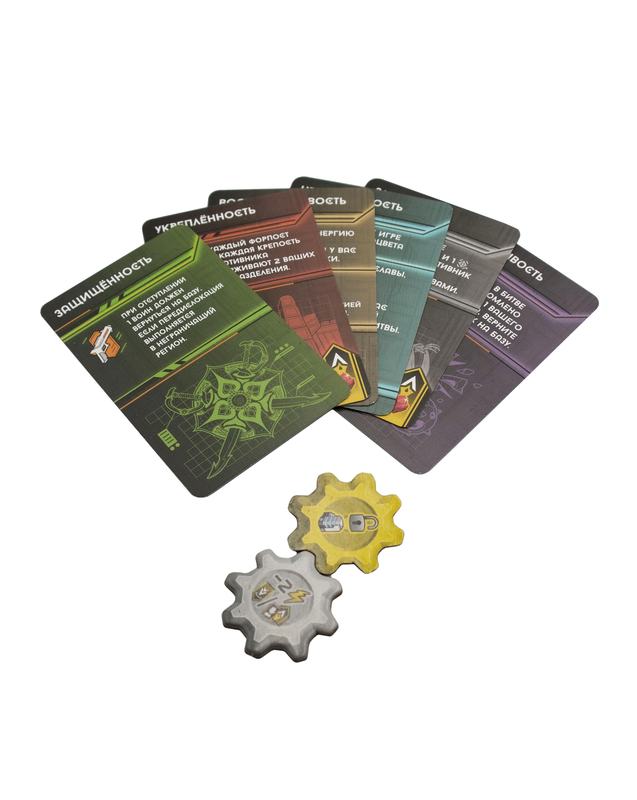 Также это дополнение содержит новые карты тактики, качеств и жетоны добычи.
