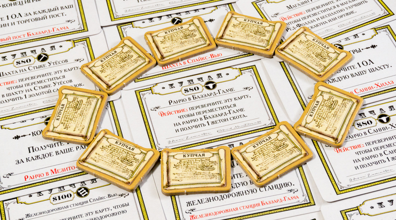 Теперь вы можете не просто заходить в салун, а купить его! Как и многие другие заведения на поле, будь то шахта, офис доктора или ранчо. Каждая недвижимость даёт вам бонус в процессе игры и победные очки в конце. Но будьте бдительны! Конкуренты не дремлют, и можно запросто проворонить лакомый кусок Дикого Запада…