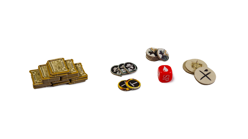 Эти карты заменят сюжеты из базы. До начала партии на поле нужно положить особый планшет на место области карт сюжетов, а на него — новую колоду сюжетов. Она состоит из 20 пар карт, каждая пара — это один сюжет с разными развязками, и из каждой пары вы выбираете одну случайную карту. То есть вы не будете заранее знать, к чему именно приведут ваши действия (или бездействие!)