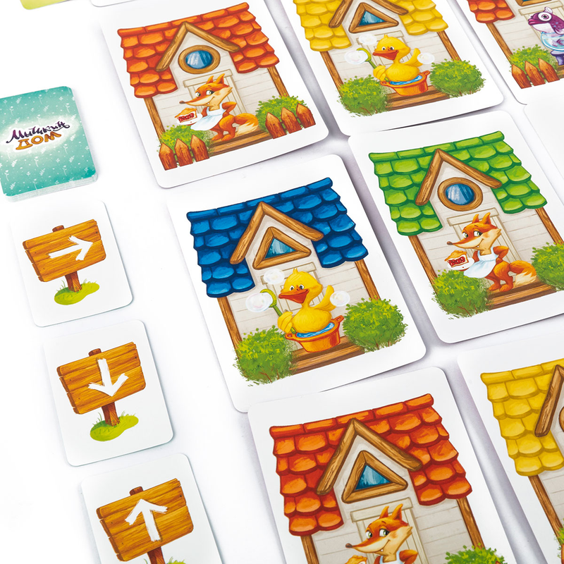 Какой мышонок откажется от чаепития с земляничными пирогами в компании лесных друзей? Глаза разбегаются от количества приглашений! А домики у зверят чересчур похожи, как бы их не спутать... Детская игра "Мышкин дом" – это серия мини-игр для развития логики, или просто весёлого семейного вечера в компании крошек-мышат. Играть можно как в команде, так и с элементами соревнования для детей старшего возраста. Ребёнку будет интересно разглядывать и изучать карточки забавных жителей гостеприимной долины, и их крошечные, но такие уютные домики!