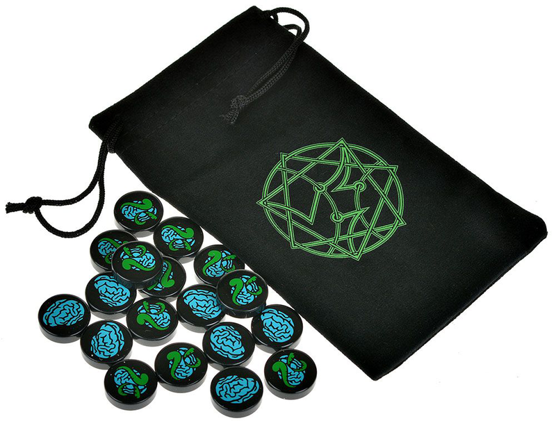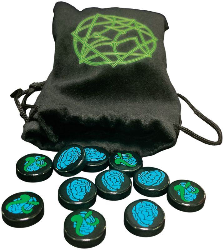 В комплекте пластиковые фишки мифов и приятный на ощупь тканевый мешочек, в котором можно взять игру в дорогу.