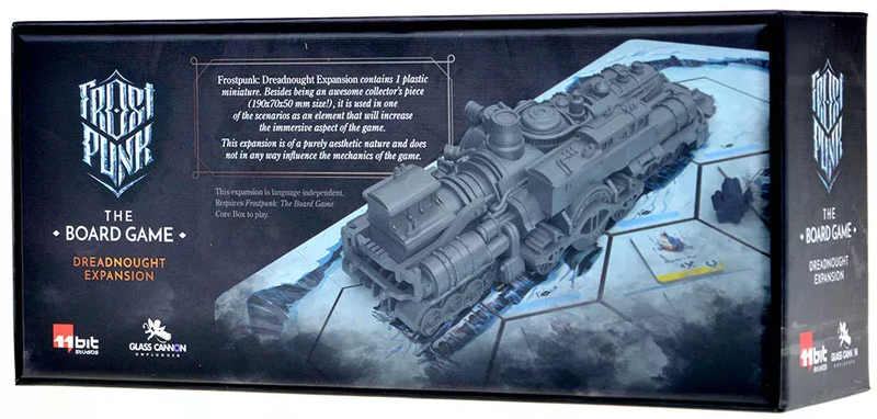 Дополнение Dreadnought Expansion украсит вашу игру по-настоящему исполинским дредноутом. Он используется при подготовке одного из сценариев базовой игры Frostpunk: The Board Game, а также сам по себе является ценным коллекционным предметом. Вы только представьте: 20 сантиметров высококачественной детализированной миниатюрки на вашей полке... Шикарно же!