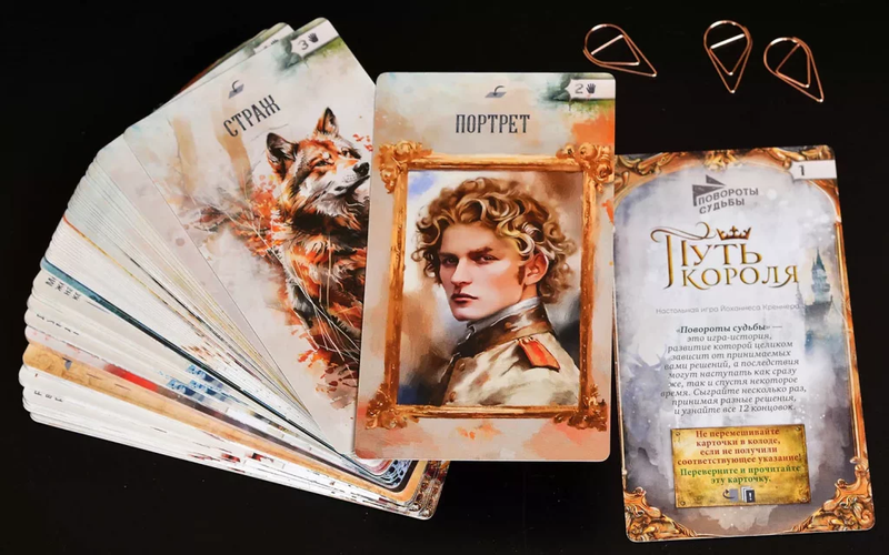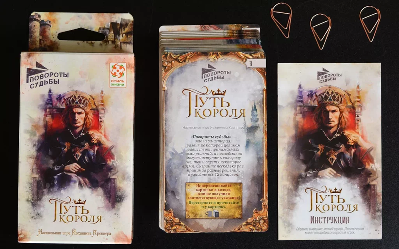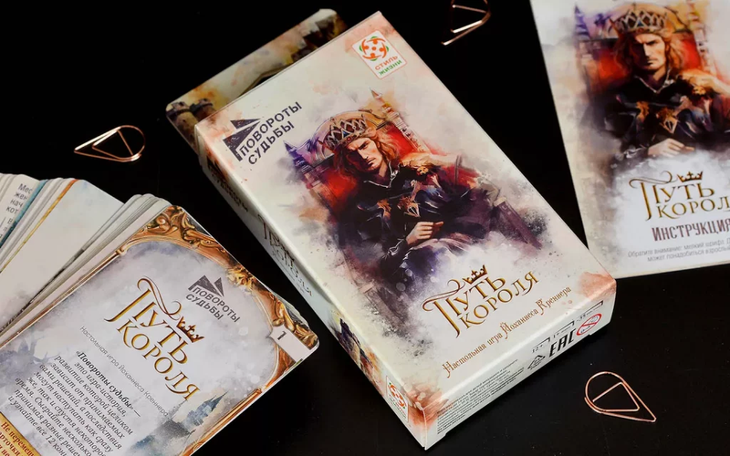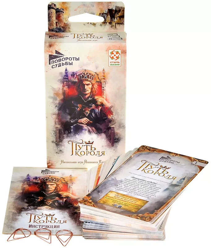 "Повороты судьбы: Путь короля" – увлекательная нарративная игра, в которой вы проживёте жизнь принца на пути к трону. Читайте карточки с событиями, принимайте решения и следите за ключевыми показателями. Ваши выборы влияют на сюжет мгновенно и в перспективе, а собранные предметы и уникальные титулы делают каждую партию неповторимой. Погрузитесь в атмосферу средневековья с красивыми иллюстрациями и продуманной механикой, где вы – творец своей судьбы.