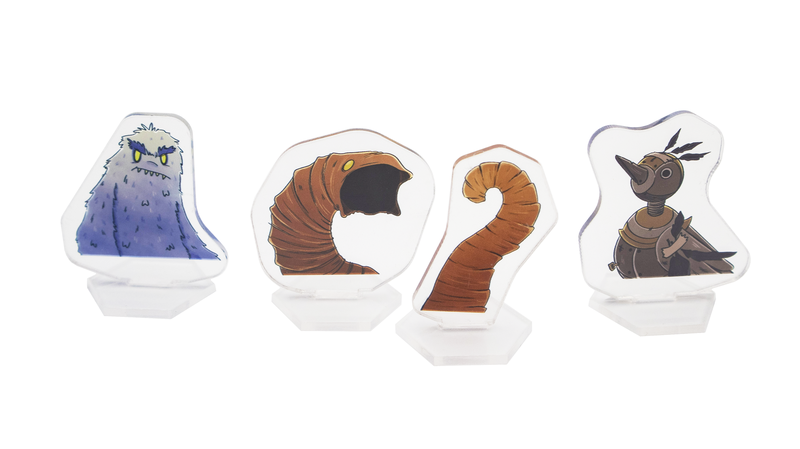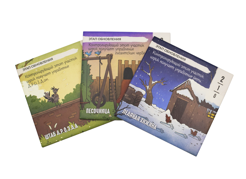 3 карты, 3 участка и 4 фигурки (у гигантского червя есть голова и хвост) обитателей фермы