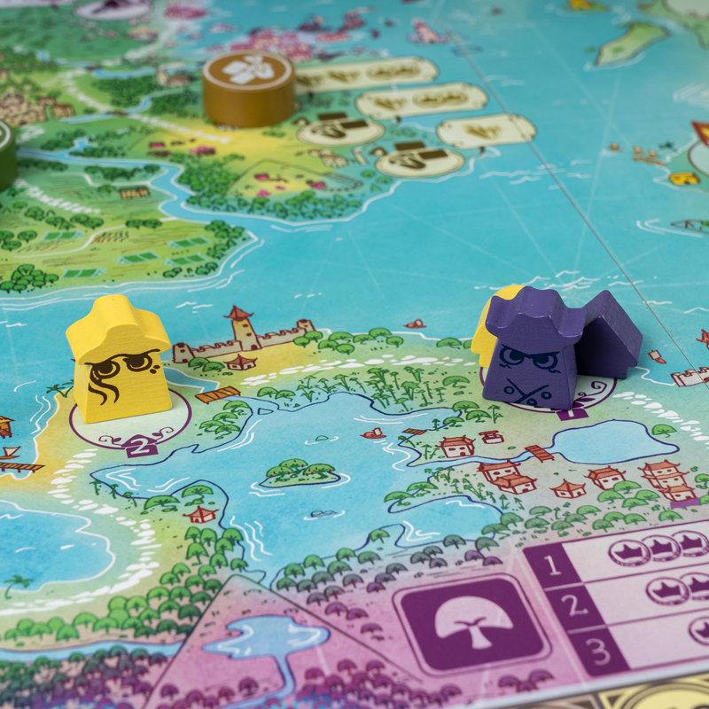 После розыгрыша карт приключений вы будете использовать те же жетоны, которые вы взяли из мешка, чтобы посетить локации на материке Навории в фазе размещения рабочих. Сила локаций, где размещаются рабочие, уменьшается после размещения каждого жетона, поэтому вам следует посетить каждую локацию первой, чтобы получить максимальную выгоду!