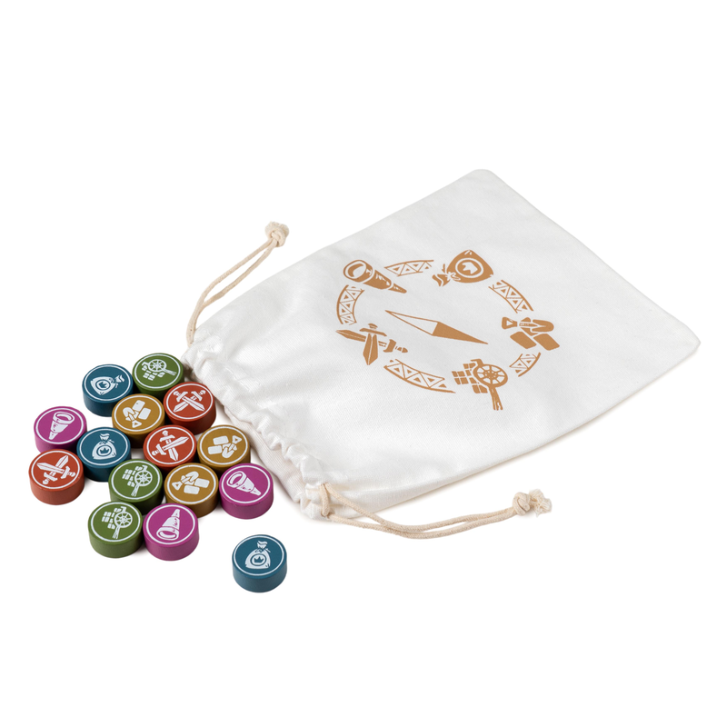 В игре «Исследователи Навории» вы будете брать жетоны действий из мешка и использовать их для розыгрыша карт приключений на вашем игровом поле.