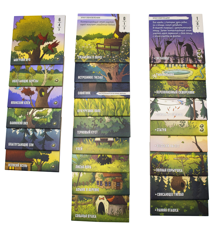 В ходе игры вы будете по очереди размещать своих и чужих птиц на участках модульного поля (фермы), чтобы добиваться того или иного преимущества — заработать побольше ПО, воспользоваться эффектом участка и/или получить в управление одного из обитателей.