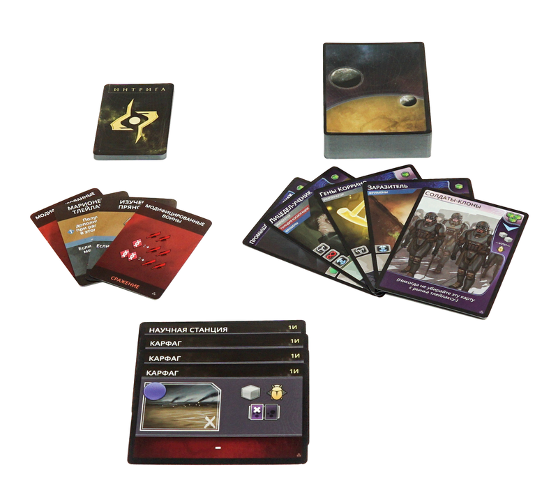 Совершая открытия и достигая генетических маркеров, вы можете применять соответствующие эффекты карт. Достигнув первого маркера, вы получаете возможность класть купленные карты тлейлаксу сразу на верх колоды, а достигнув второго, будете брать карты из колоды вместо продвижения по треку исследования при розыгрыше соответствующего символа.