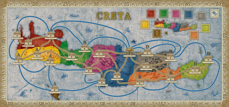 Крит. Крайне компактная карта. Игровые правила прежние, не считая небольших нюансов. Тайлы с маркировкой "C" не используются. В провинция острова Gavdos расположен всего 1 город. Именно он позволяет выбрать префекту бонус на производство + 2 сестерции;