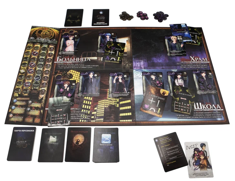 С помощью карт вы влияете на персонажей — заставляете их перемещаться или, наоборот, запрещаете им это, а также накладываете на них различные жетоны состояний: