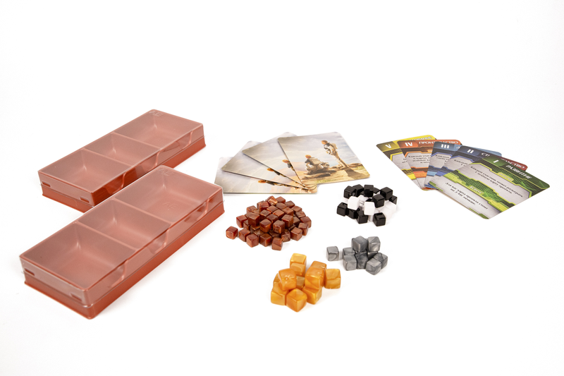 Также вы найдёте в коробке более крупную шкалу РТ, шкалу нового параметра — инфраструктуры, а также новые карты проектов, относящиеся к этой механике.