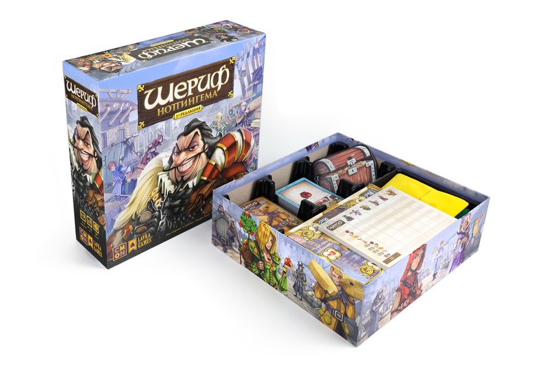 Вторая редакция игры "Шериф Ноттингема" включает обновлённые правила, современное и красочное художественное оформление, а также лучшие модули дополнения "Благородные разбойники" - "Королевские товары", "Чёрный рынок" и расширение для 6 игроков.