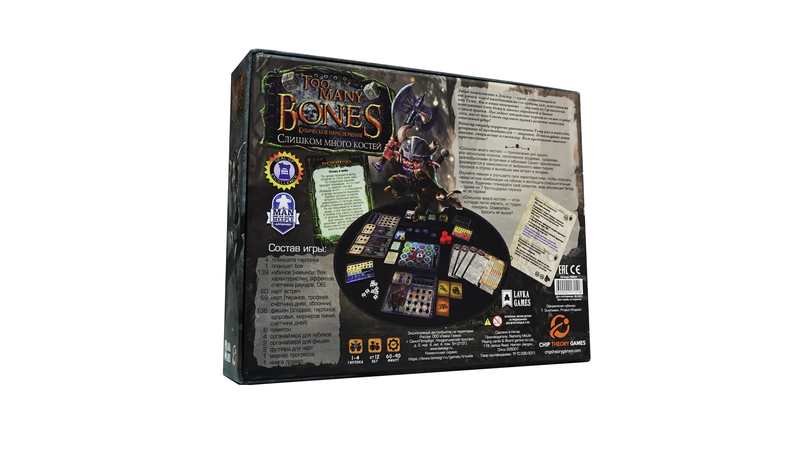 Настольная игра «Слишком много костей» предлагает познакомиться с удивительным сочетанием ролевой игры с дайсбилдингом (начав игру с небольшим набором кубиков, в процессе вы будете увеличивать их количество и качество). В этой игре всё, что вы знаете о бросках костей, переворачивается с ног на голову. Эта стратегическая игра превратит вас в представителей фэнтезийной расы и отправит в приключение на северные территории, чтобы искоренить растущие силы врага и, конечно же, победить главного злодея, ответственного за все бедствия.