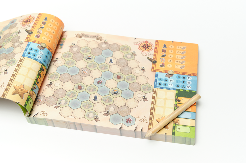 Партия длится два или три раунда, в зависимости от размера острова карту которого каждый игрок получает в начале игры. Она расчерчена на шестиугольники, на которых изображены различные типы местности, деревеньки аборигенов, обозначены места расположения обелисков, древних манускриптов и логова чудовищ. На этой карте вы и будете отмечать карандашом пути своего следования.