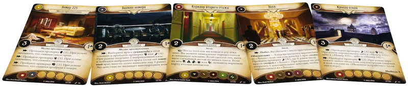 "Убийство в отеле "Эксельсиор" – это новое самостоятельное дополнение к карточному "Ужасу Аркхэма", которое можно как пройти отдельно, так и присоединить к своей кампании. В нём детективам предстоит раскрыть мрачные тайны аркхэмского элитного отеля "Эксельсиор". Время стремительно кончается, а опасность караулит за каждым углом!