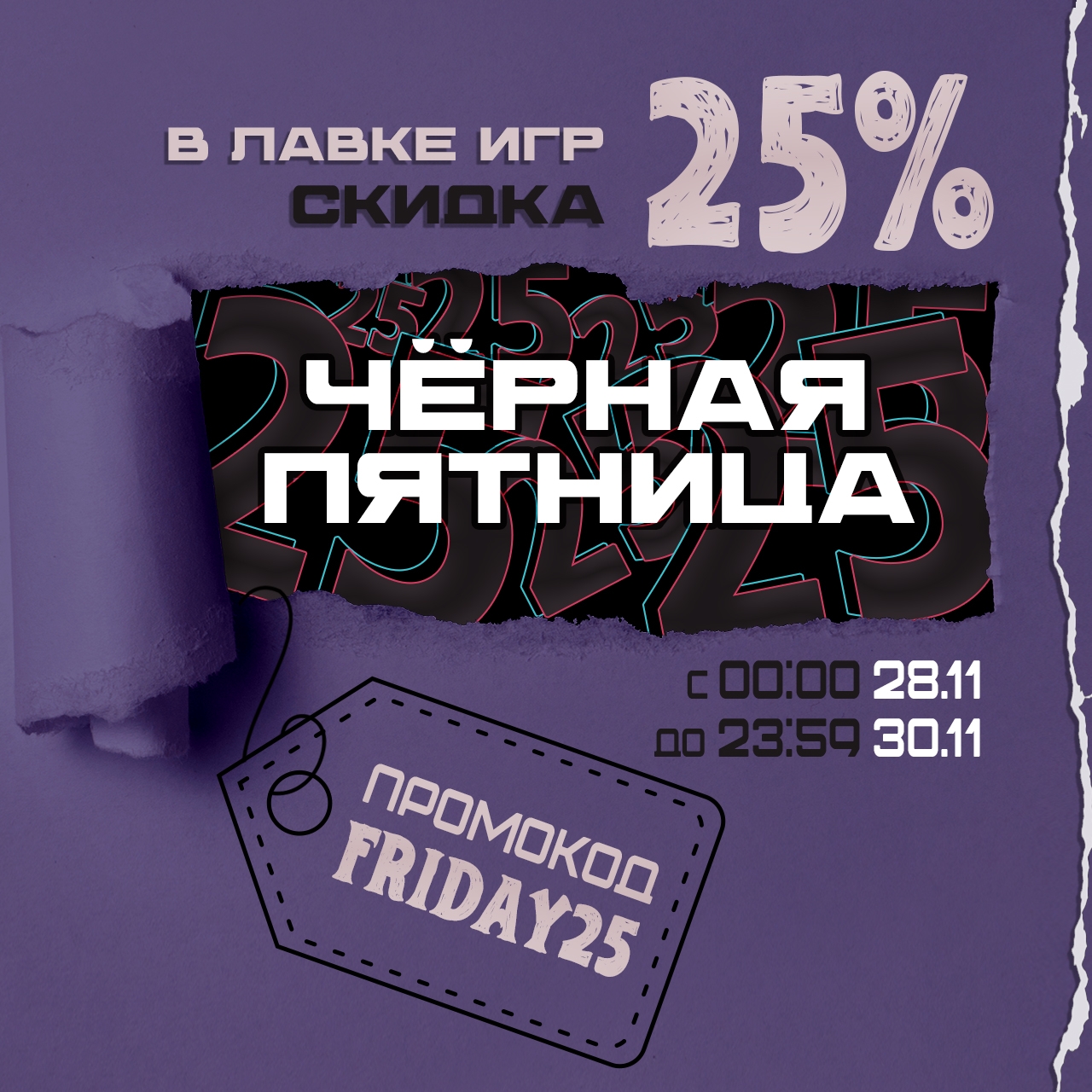— Акция начинается в 00:00:00 28.11.2025 и заканчивается в 23:59:59 30.11.2025.